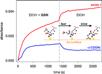 BIERI, Marco, BUERGI, Thomas. Adsorption kinetics of L-glutathione on gold and structural changes during self-assembly: an in situ ATR-IR and QCM study. In: PCCP. Physical chemistry chemical physics, 2006, vol. 8, n° 4, p. 513–520. doi: 10.1039/b511146c