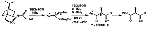 VON OPPOLZER, Wolfgang et al. Enantiomerically pure, crystalline ‘anti”-aldols from N-acylbornanesultams: aldolization and structure of intermediate t-butyldimethylsilyl-N,O-ketene acetal. In: Tetrahedron Letters, 1991, vol. 32, n° 1, p. 61–64. doi: 10.1016/S0040-4039(00)71218-4