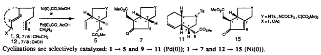 Diastereocontrolled nickel(0)- and palladium(0) catalyzed “metallo-ene-type” cyclizations/carbonylations