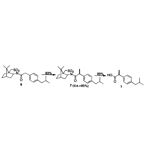 VON OPPOLZER, Wolfgang, ROSSET, Stéphane, DE BRABANDER, Jef. Asymmetric synthesis of ibuprofen via diastereoselective alkylation of a homochiral N-acylbornanesultam. In: Tetrahedron letters, 1997, vol. 38, n° 9, p. 1539–1540. doi: 10.1016/s0040-4039(97)00148-2