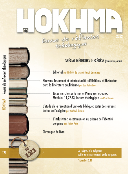 BULUNDWE, Kampotela Luc. Nouveau Testament et intertextualité : définitions et illustration dans la littérature paulinienne. In: Hokhma, 2022, n° 121, p. 5–26.