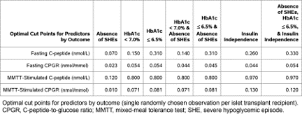 Predictive Value of C-Peptide Measures for Clinical Outcomes of β-Cell Replacement Therapy in Type 1 Diabetes: Report From the Collaborative Islet Transplant Registry (CITR)