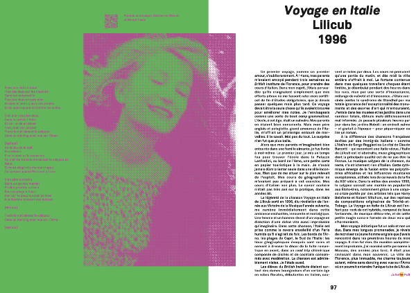 FALL, Juliet Jane. Voyage en Italie. In: Voyage enchanté: chansons et imaginaires du voyage. Pieroni, Raphaël; Staszak, Jean-François (Ed.). Genève : Georg, 2024.