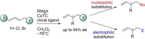 FALCIOLA, Caroline Alexandra, ALEXAKIS, Alexandre. 1,4-Dichloro- and 1,4-Dibromo-2-butenes as Substrate for Cu-catalyzed Asymmetric Allylic Substitution. In: Angewandte Chemie, 2007, vol. 46, n° 15, p. 2619–2622. doi: 10.1002/anie.200604963