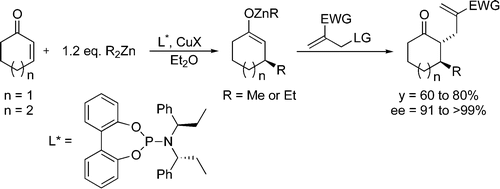 RATHGEB, Xavier, MARCH, Sebastien, ALEXAKIS, Alexandre. One-pot conjugate addition-trapping of zinc enolates by activated electrophiles. In: Journal of organic chemistry, 2006, vol. 71, n° 15, p. 5737–5742. doi: 10.1021/jo060814j