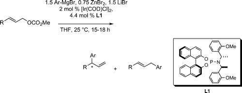 ALEXAKIS, Alexandre et al. Iridium-Catalysed asymmetric allylic substitution with aryl zinc reaggents. In: Organic letters, 2007, vol. 9, n° 17, p. 3393–3395. doi: 10.1021/ol0713842