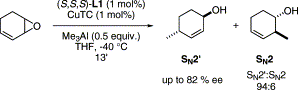 EQUEY, Olivier, ALEXAKIS, Alexandre. Enantioselective opening of cyclic vinyl epoxides with organoaluminium reagents catalysed by copper salts. In: Tetrahedron: asymmetry, 2004, vol. 15, n° 10, p. 1531–1536. doi: 10.1016/j.tetasy.2004.04.011