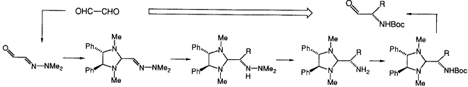 ALEXAKIS, Alexandre, LENSEN, Nathalie, MANGENEY, Pierre. Chiral aminal templates 6. Diastereoselectivity of hydrazo-ne alkylation. Asymmetric synthesis of α-amino-aldehydes. In: Tetrahedron letters, 1991, vol. 32, n° 9, p. 1171–1174. doi: 10.1016/S0040-4039(00)92036-7