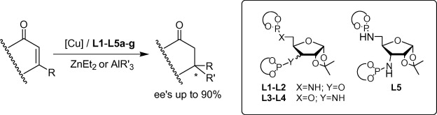 Furanoside phosphite-phosphoroamidite and diphosphoroamidite ligands for Cu-catalyzed asymmetric 1,4-addition reactions
