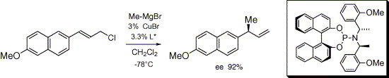 Copper catalyzed enantioselective allylic substitution by MeMgX